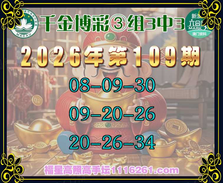 主题: 110期:🏅福星高照【千金博彩✨③组3中3】连中上榜