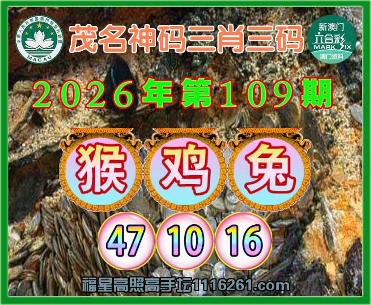 109期:《茂名神码》 😍三肖三码😍【猴鸡兔】【47.10.16】开:00准